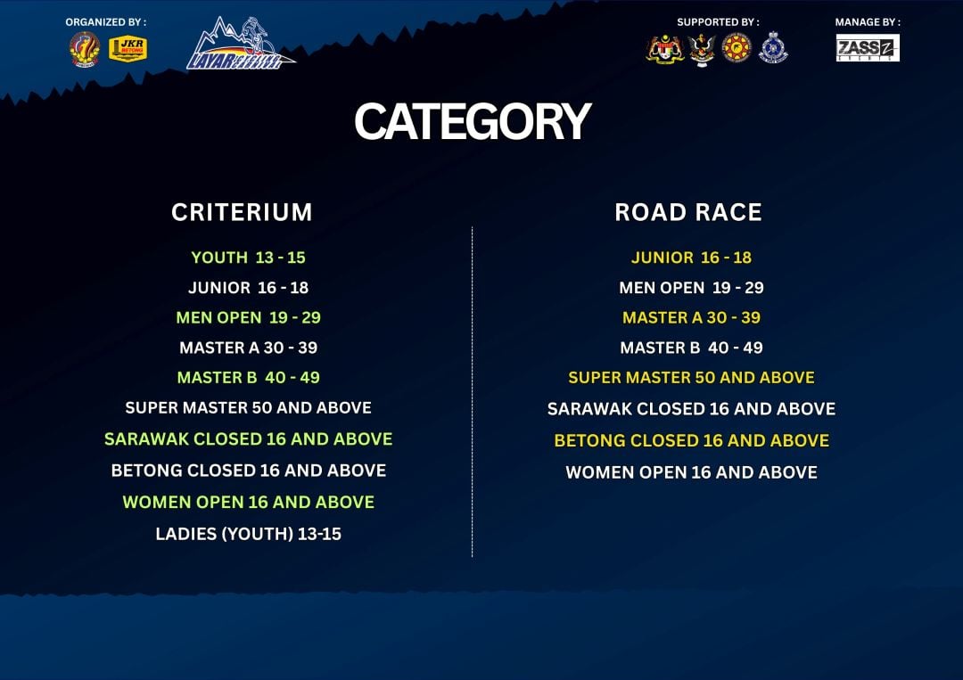 This year’s Layar Cycling Carnival marks its 7 edition. It was first introduced in 2017. It is a highway cycling race event that present the challenge of hilly routes and is held over 3 days with two main events, namely the Criterium and the Highway Race. This year will also see the return of the Ulu Layar / Ulu Paku route, which has been a dream route for cyclists. The cycling challenge starts in the last 40 kilometers, where riders will begin a tough uphill climb. In this 7 edition, the Betong Division Public Works Department (JKR) has been appointed as the organizing committee for this event.