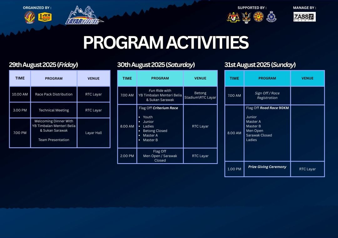In addition to the cycling race, there will be several interesting side events throughout the Layar Cycling Carnival, which will be held from 29 August to 31 August 2025.